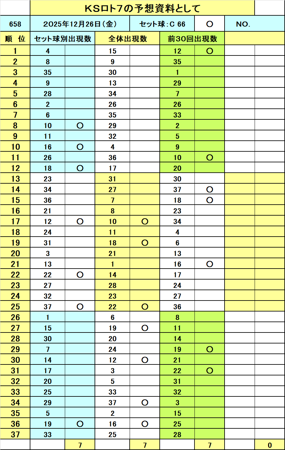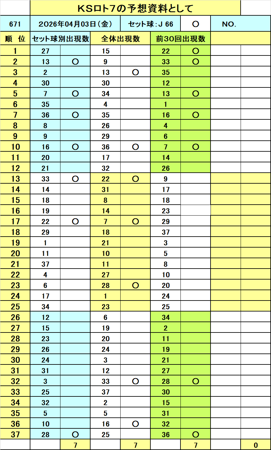===◆===◆======◆===◆=== ◆10億円獲得作戦(今週のロト7当選番号予想資料です!)◆